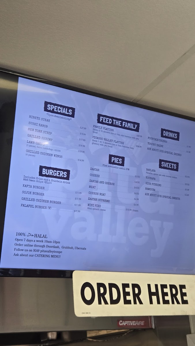 Pita Valley in Tempe, AZ, brings the heart of Lebanese and Middle Eastern cuisine to your plate with fresh, authentic flavors and generous portions. Their menu is a vibrant blend of halal, vegan, and vegetarian options that cater to all palates. Start with classic appetizers like moudarada, a comforting dish of lentils and basmati rice topped with caramelized onions, or the crispy, golden-brown kibbeh filled with seasoned ground beef and bulgur. The star offerings include their famed chicken shawarma wraps—double-meat, marinated to perfection—or the savory beef kabob combo served alongside hummus and fresh pickles.